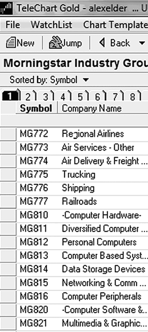 Как найти отраслевые группы и их состав? Я для этого использую программу, которая называется TC2000 (рис. 2). Эти данные также имеются на Yahoo Finance, в Investors’ Business Daily и в других источниках.