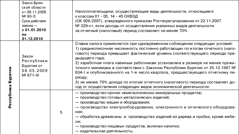 В случае если объектом налогообложения являются доходы, налоговая ставка составляет 6% (п. 1 ст. 346.20 НК РФ). В случае если объектом налогообложения являются доходы, уменьшенные на величину расходов, налоговая ставка устанавливается в размере 15% (п. 2 ст. 346.20 НК РФ). При этом законами субъектов РФ могут быть установлены дифференцированные налоговые ставки в пределах от 5 до 15% в зависимости от категорий налогоплательщиков (См. табл. 1).