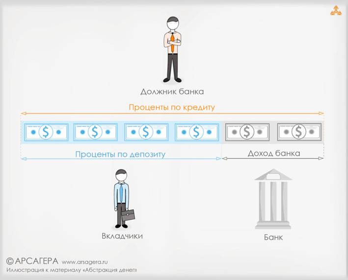 Если посмотреть на балансы банков, то будет хорошо видно, что им не принадлежат «все активы мира». Основные доходы от кредитования заемщиков получают владельцы депозитов. Разница между доходами по кредитам и депозитам идет на содержание профессионального банковского аппарата (зарплата служащих), а то, что остается, – это прибыль владельцев банковского бизнеса. Прибыль владельцев банковского бизнеса существенно меньше, чем доходы по депозитам.