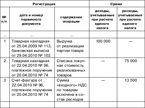 В книге учета доходов и расходов стоимость реализованных товаров и относящийся к ней «входной» НДС налогоплательщики должны показывать отдельными строками (см. письмо Управления ФНС России по г. Москве от 30.11.2006 № 18-18/3/104921@).