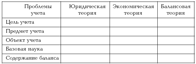 Задание: укажите основные черты юридической, экономической и балансовой теорий двойной записи с помощью таблицы.
