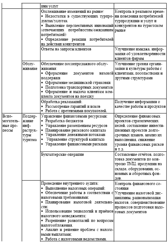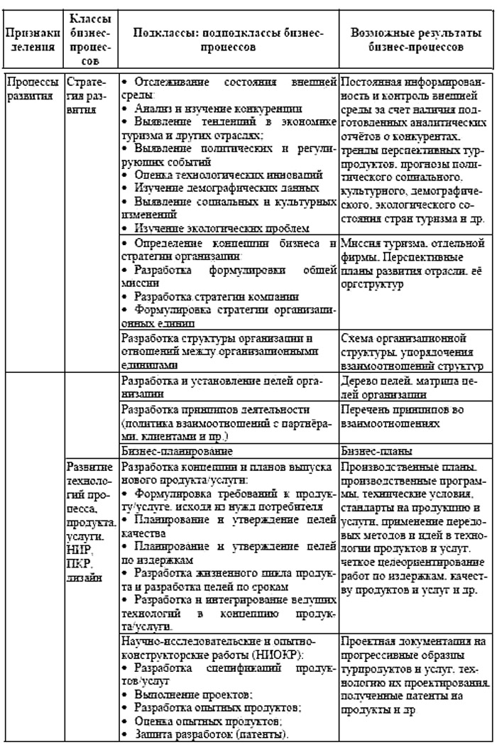 Таблица 3.3. Классификация бизнес-процессов туризма