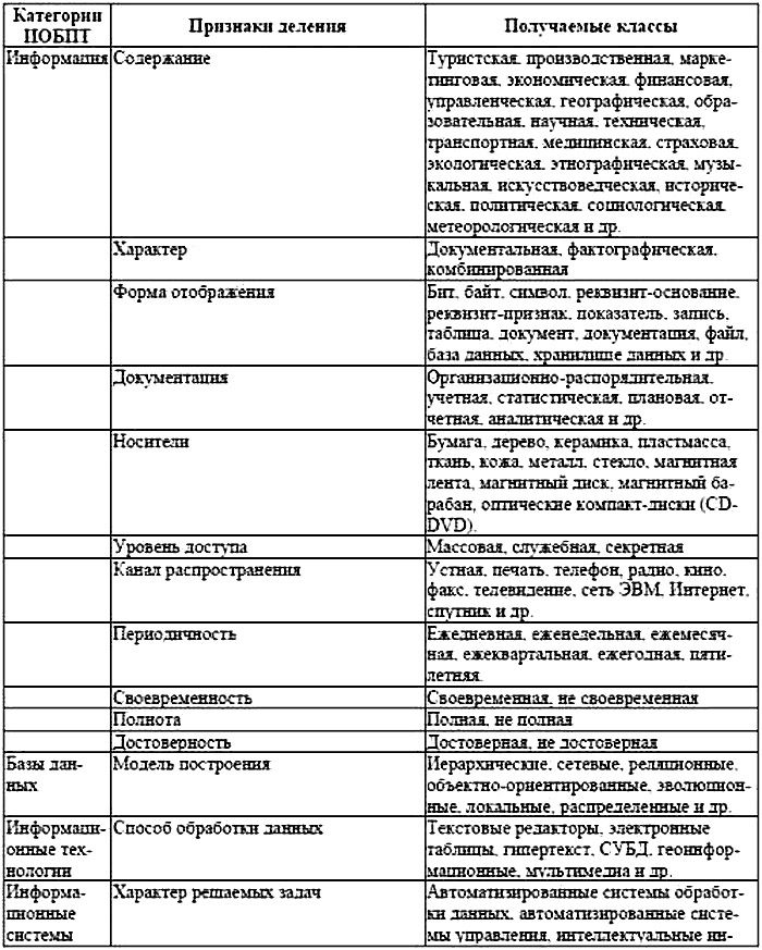 Таблица 3.4. Классификация информационного обеспечения бизнес-процессов туризма