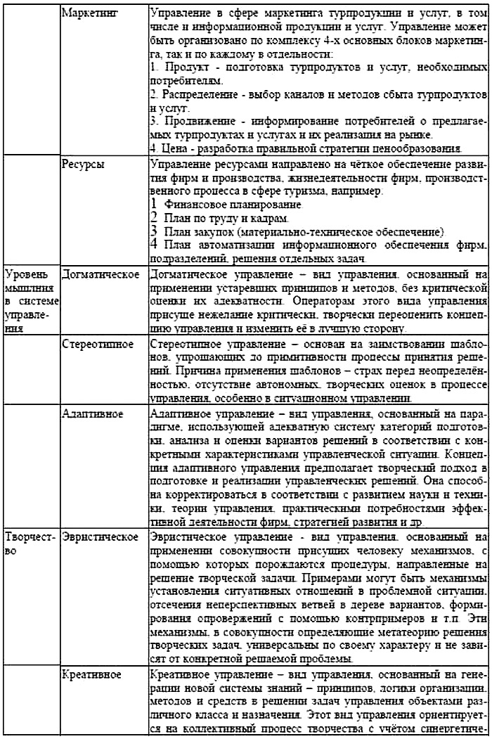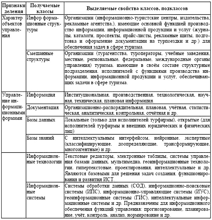 Таблица 3.5. Классификация управления информационным обеспечением бизнес-процессов туризма