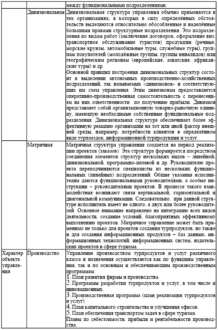 Кроме того, следует учитывать и такой признак, по которому выделяются мощные классы туризма, то есть по уровням управления – от Всемирной туристической организации (ВТО) до конкретного турагента. Взаимодействие между службами управления и турфирмами может выполняться по различным направлениям – производственным, информационным, научным и др.