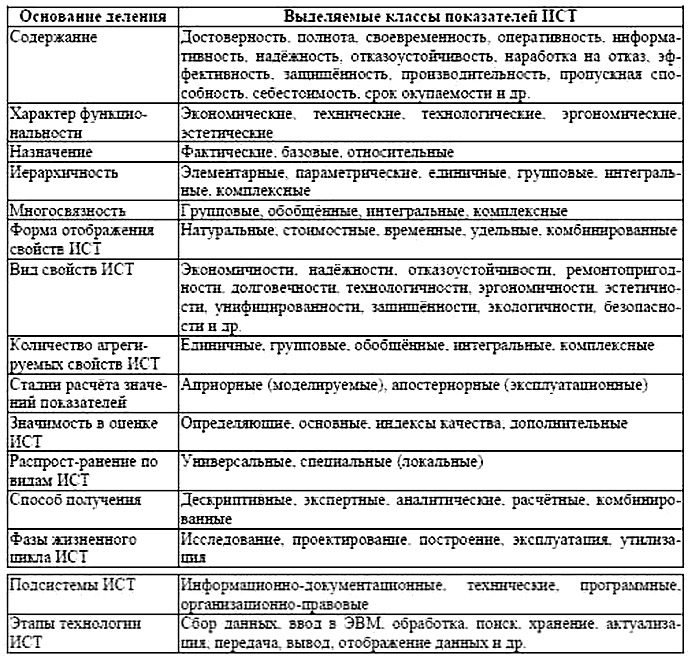 Таблица 3.11. Классификация показателей оценки ИСТ