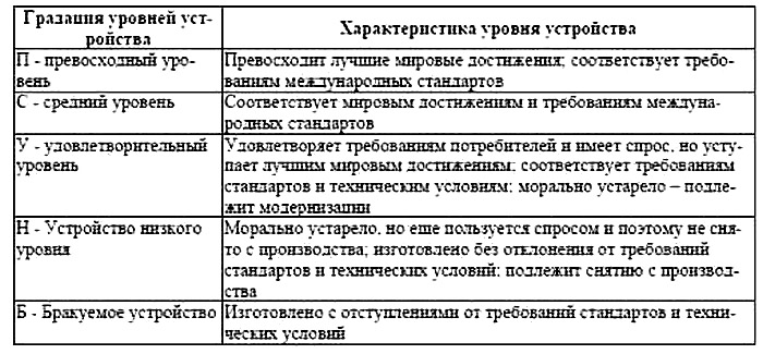 Результаты определений всех показателей и технического уровня устройств отражаются в специальной карте – «Карта технического уровня и качества изделий» или в сопоставительной «Таблице уровня». Данные карты (таблицы) уровня анализируются по специальным методикам, учитывающим специфику устройства. Образцы аппаратных средств ИСТ для оценки их технического уровня могут иметь несколько градаций (таблица 3.12).