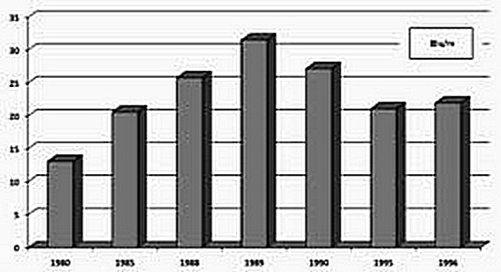 С конца 1994 и до первой половины 1996 гг. макроэкономическая политика государства претерпела изменения, что позволило существенно замедлить инфляционные процессы в стране. Если прирост потребительских цен за январь-апрель 1995 г. составил 156 %, то за оставшиеся восемь месяцев – только 35 %. В 1996 г. прирост потребительских цен снизился до 39 % (или 2,6 % в среднем за месяц)[197].