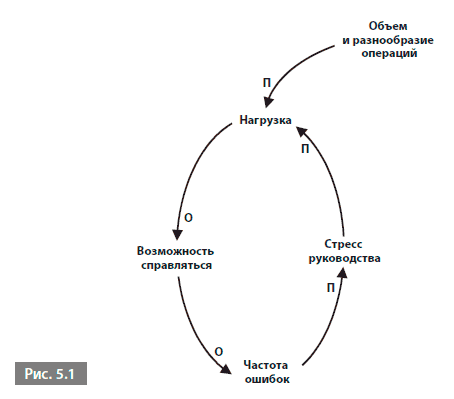 Предположим, что на фондовом рынке что-то произошло, и активность на биржах снизилась. В результате снизились и объем, и разнообразие операций, и нагрузка. Как следствие этого, возможность справляться повысилась, а частота ошибок пошла на спад. Это снизило уровень стресса руководства, нагрузка стала еще меньше, а возможность справляться повысилась еще больше…