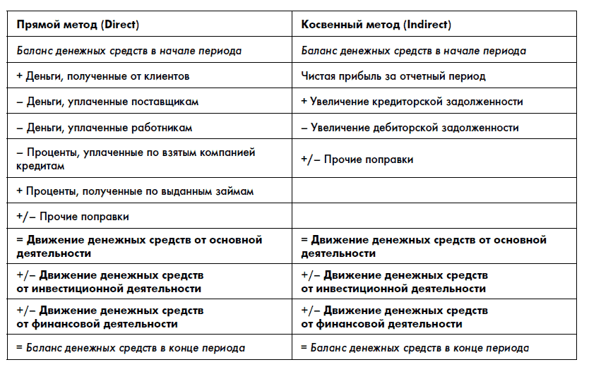 Чтобы инвесторам и компаниям жизнь не казалась медом, существуют два формата отчета о движении денежных средств: