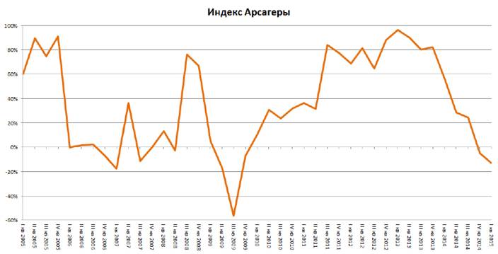 • Индекс Арсагеры наглядно демонстрирует взаимосвязь между экономикой компании и стоимостью ее акций.