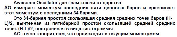 Сигнал для второго входа основывается на осцилляторе awesome oscillator (АО). АО, несомненно, является наилучшим индикатором моментума, имеющимся на фондовом и фьючерсном рынках. Это все равно, что читать завтрашнюю WallStreet Journal.